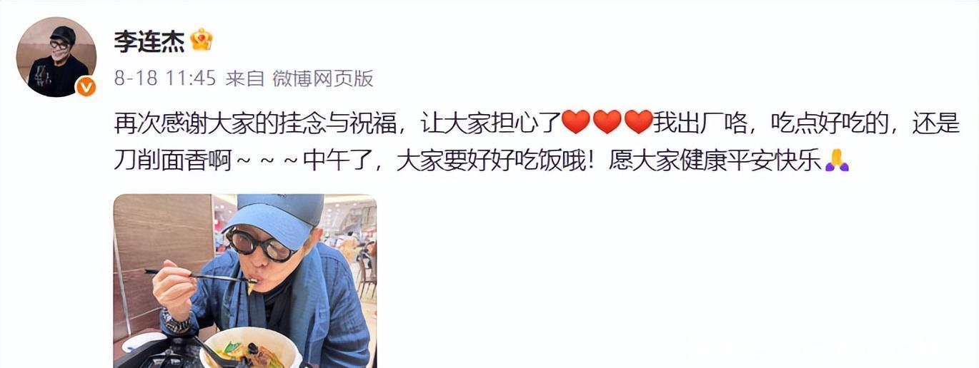 此前报道:8日,李连杰在社交媒体账号更新图文,文字写道“最近又经历了一次无常的试炼。”两张配图中,一张是李连杰躺在病床上,另一张图片是手术室的照片。次日,他发消息称自己已经“出厂”,感谢网友们的挂念与祝福。